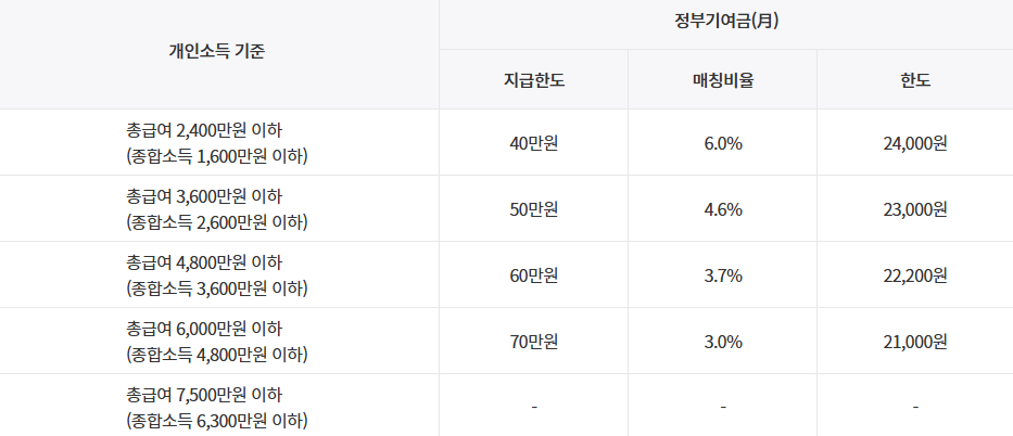* 혜택1: 납입금액에 비례해 소득구간별 정부기여금을 지원합니다.