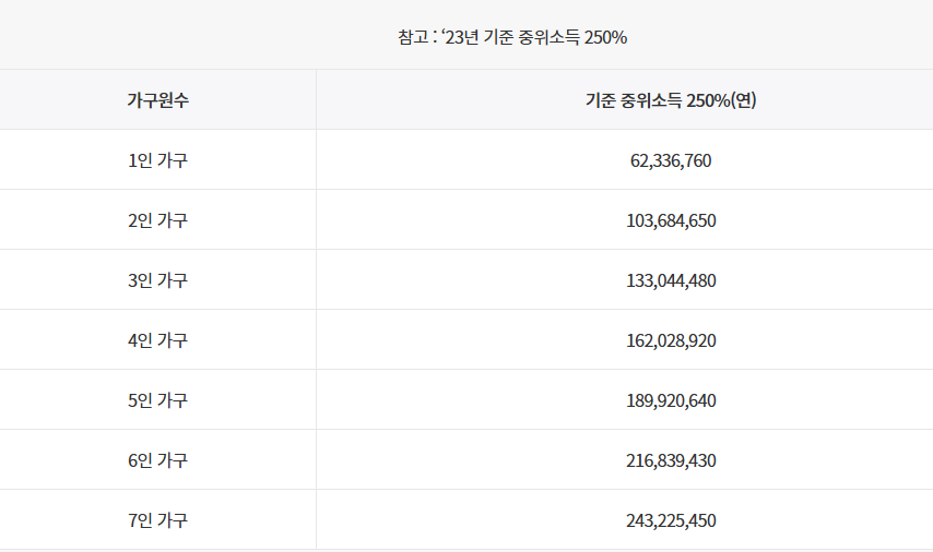 3.가구 소득: 가구원 수에 따른 기준 중위소득 250% 이하